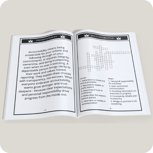Puzzles for Better Teams: Series Two – Accountability & Ownership is a crossword puzzle workbook with a purpose. Designed to reinforce real-world leadership behaviors, this edition focuses on two foundational skills: accountability and ownership.